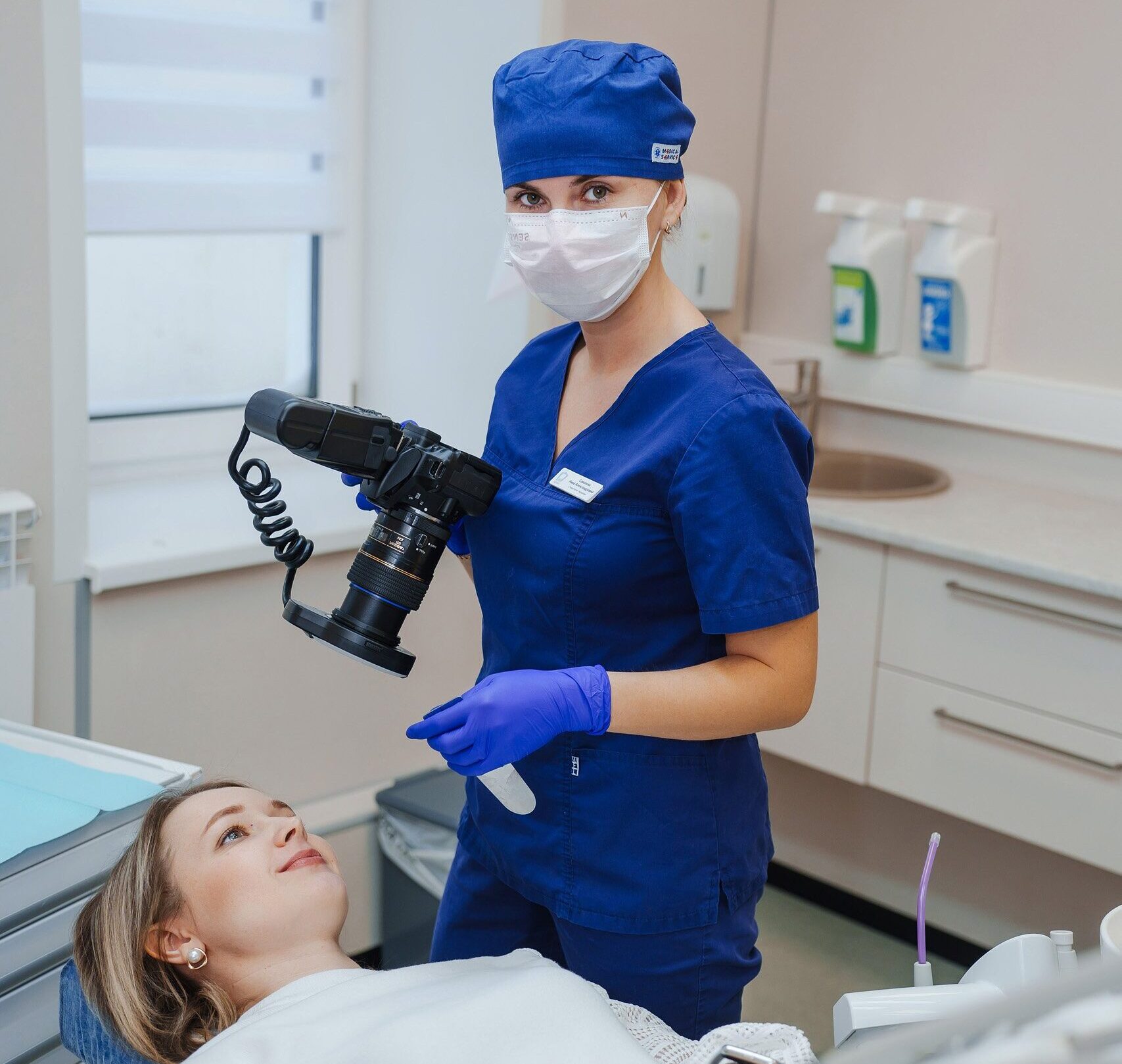 - Фото после процедуры. Врач показывает результат: где был налёт и как изменилась ситуация. Пациент видит эффект и получает наглядную мотивацию для правильной гигиены дома.